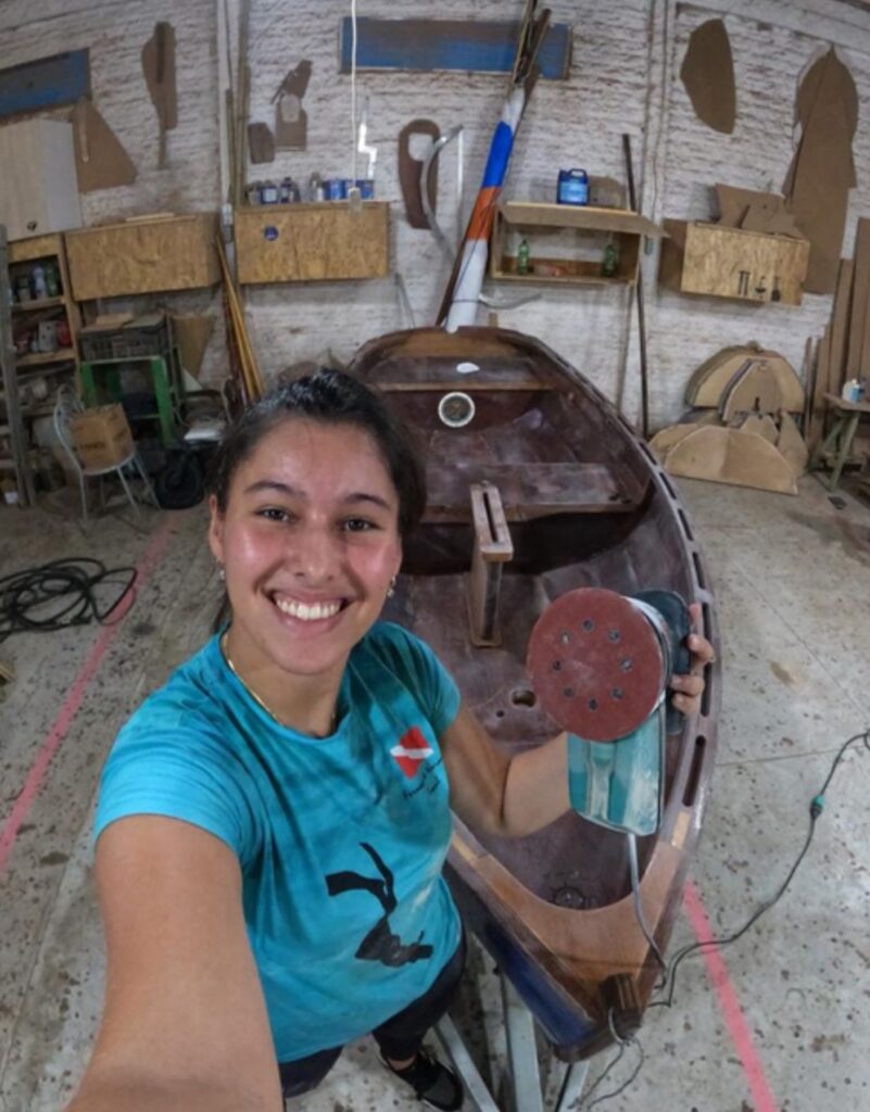 Foi ao entrar no Paiol, projeto da Associação Náutica de Itajaí (ANI), que ela descobriu o mundo da vela e da construção de barcos.