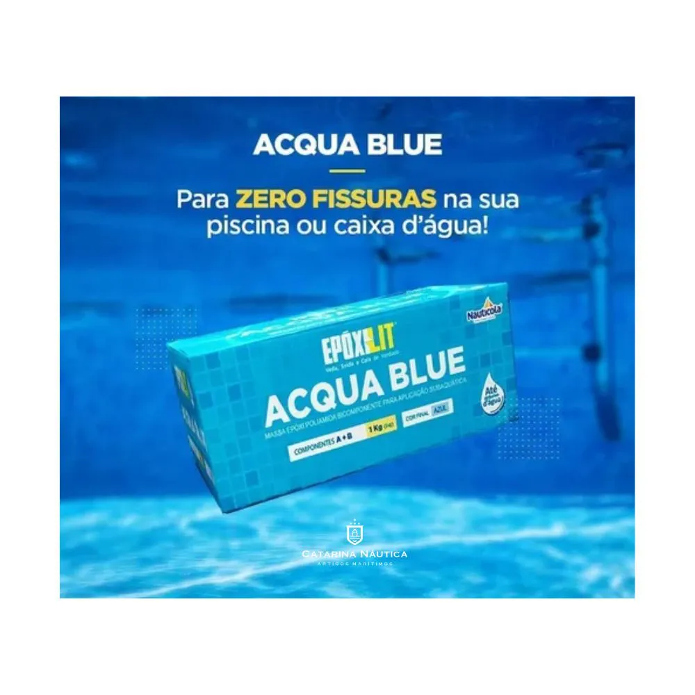 A Acqua Blue é uma massa epóxi bicomponente (A + B) que permite reparos até embaixo d’água, sem a necessidade de esvaziar a piscina.