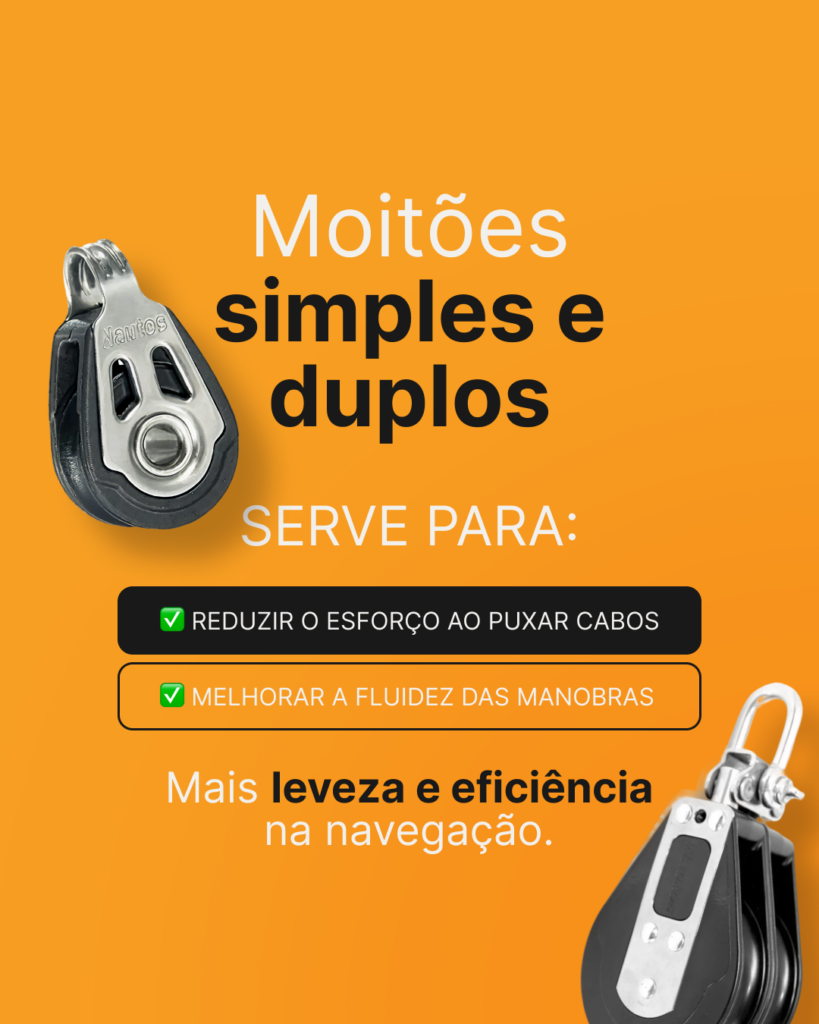 O moitão é uma das peças mais importantes no sistema de cabos do veleiro. Ele funciona como uma roldana que reduz o atrito, facilitando o ajuste das velas.