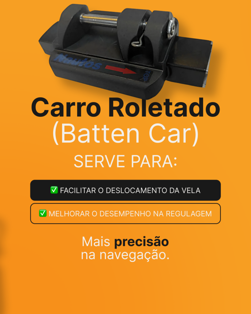 O carro roletado facilita o deslocamento da vela no mastro, tornando o ajuste muito mais suave.
