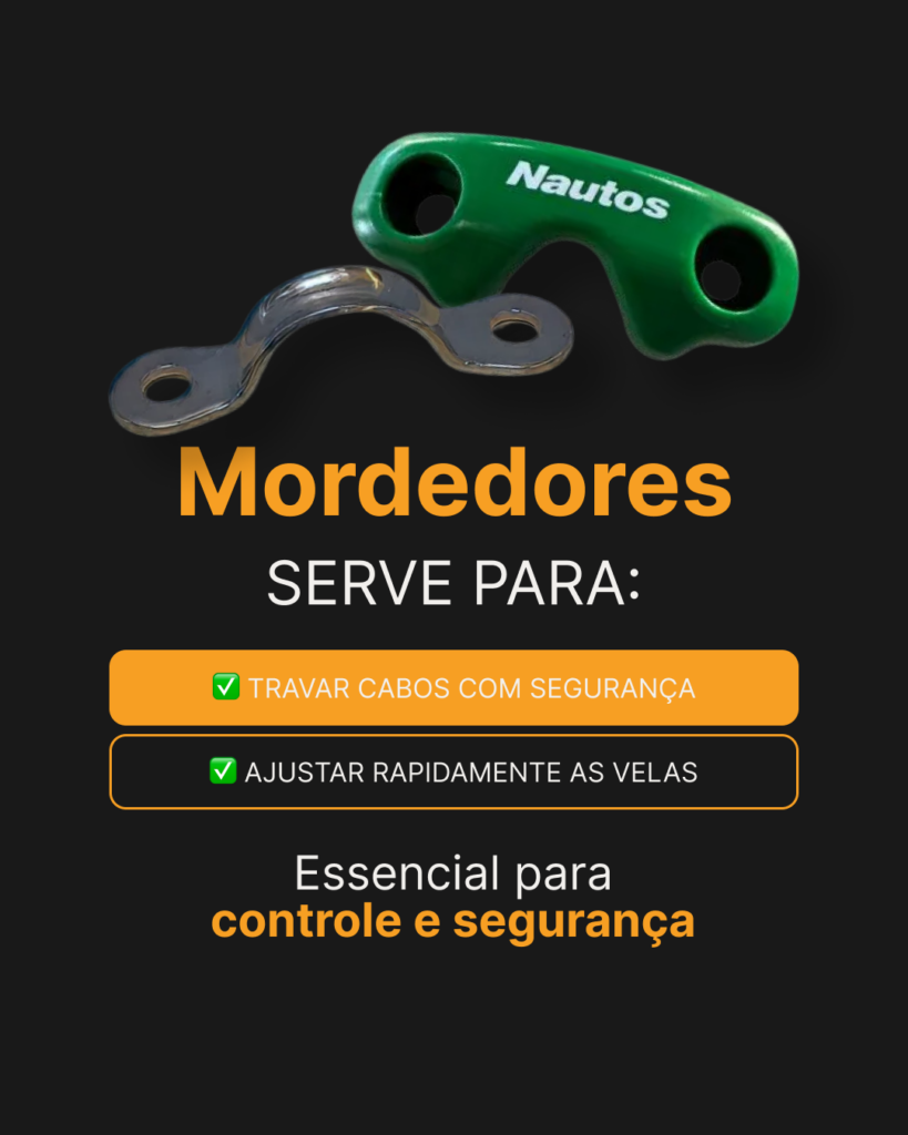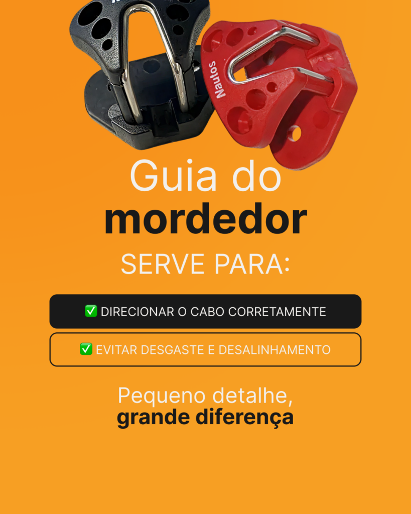 O mordedor é responsável por travar os cabos, mantendo a regulagem das velas no lugar certo.