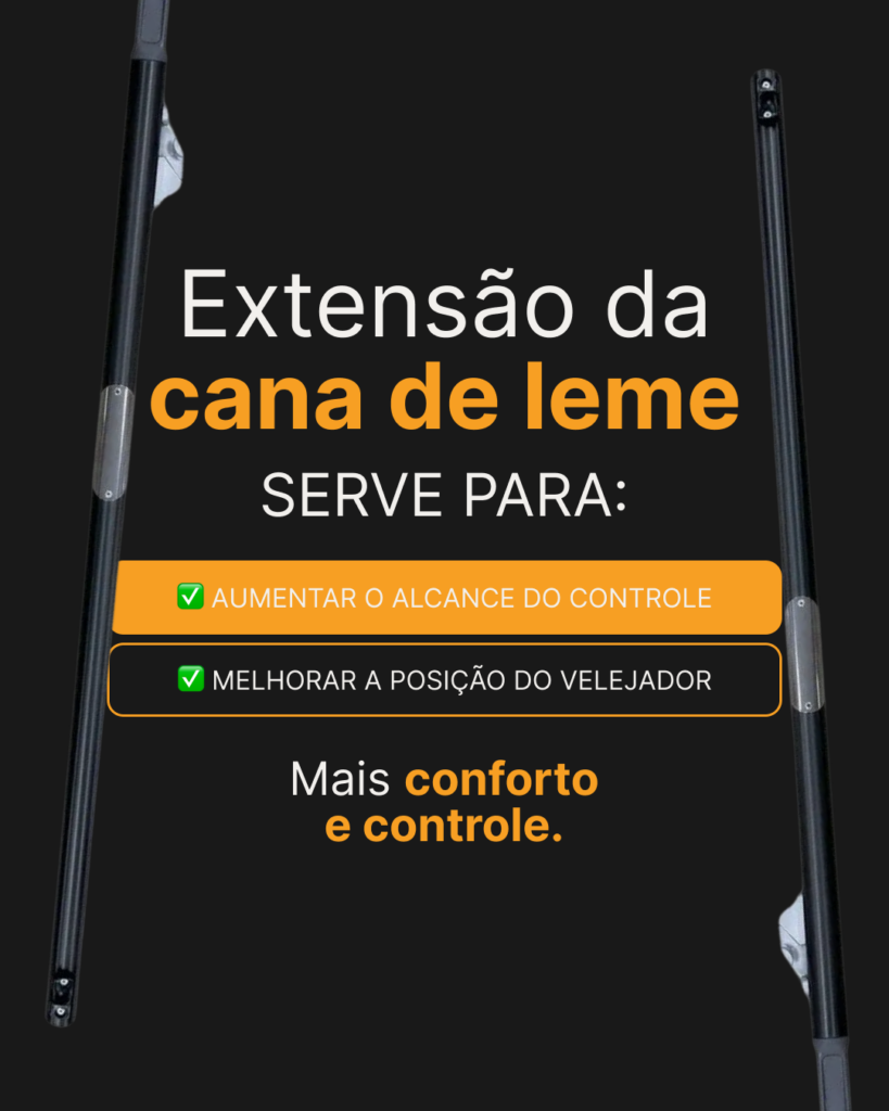 A extensão permite que o velejador controle o leme com maior alcance e conforto.