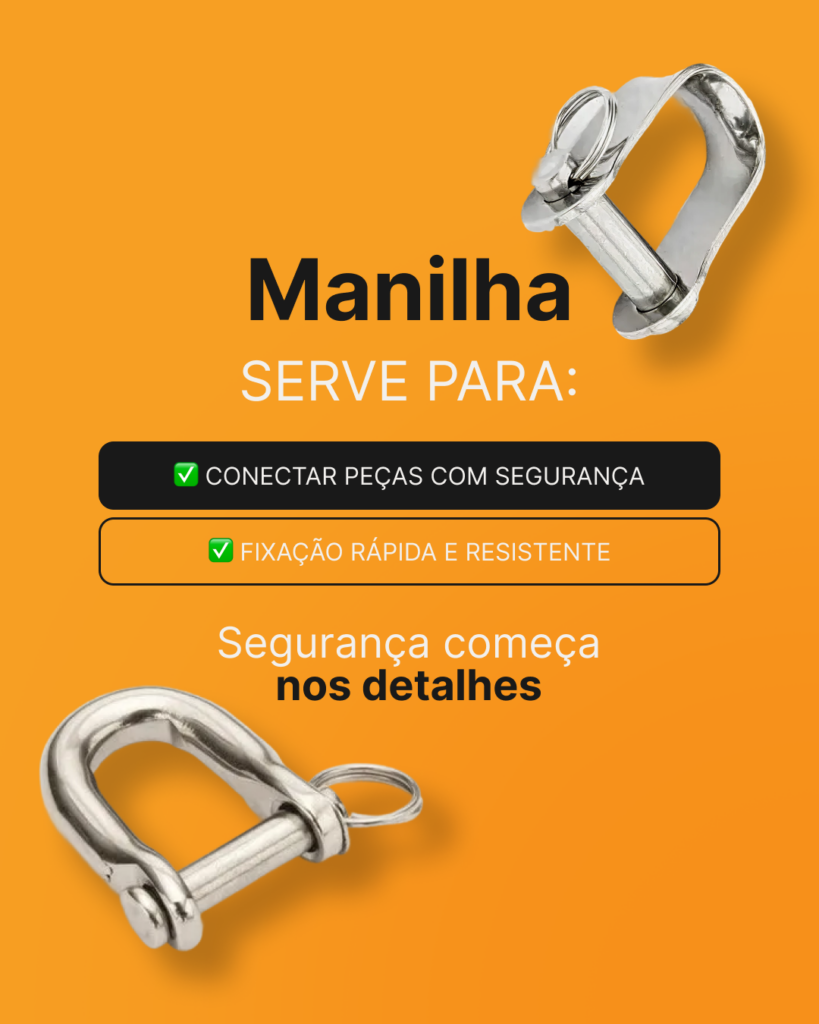A manilha é utilizada para conectar diferentes partes do sistema de forma prática e segura.