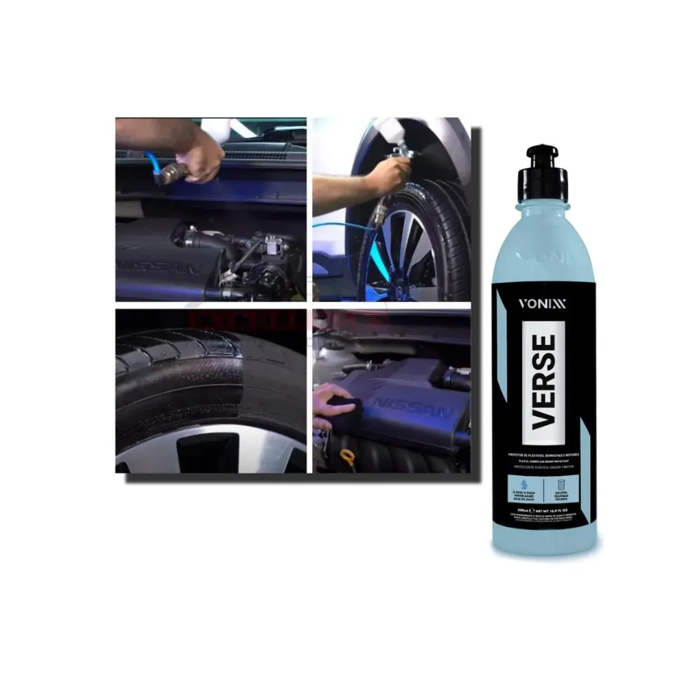Desenvolvido à base d’água, o Verse hidrata, protege e renova plásticos, borrachas e compartimentos do motor, criando uma camada protetora contra ressecamento e raios UV.